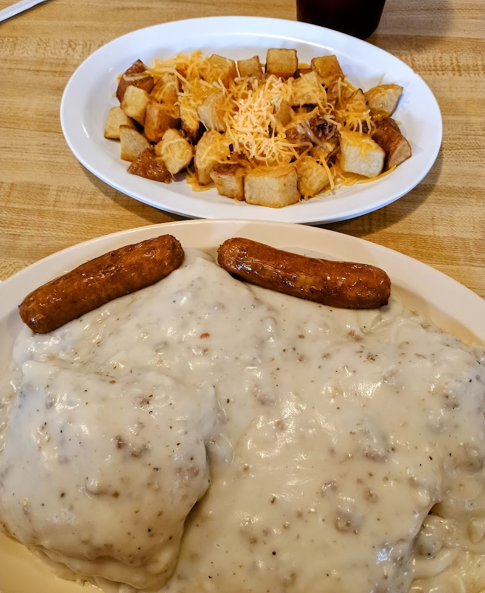 The diner specializes in substantial breakfast and lunch offerings, with large portions that stand out even for a diner known for big servings. Standouts include biscuits and gravy served with eggs, country-fried steak topped with sausage gravy, and a variety of breakfast scrambles, all reliably fresh and piping hot. The "Big Dam Biscuit" and "Mighty Duck" plate are good markers of how this place values comfort and volume, fitting for those seeking a filling start or midday fuel.